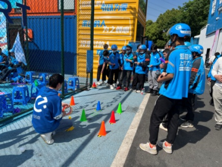 为提升蓝骑士对职业的归属感和认同感,也为了让整日奔波的蓝骑士们感受生活的美好,社区党群服务中心与拉扎斯网络科技(上海)有限公司共同为小哥们举办了“蓝骑士热力赛”。