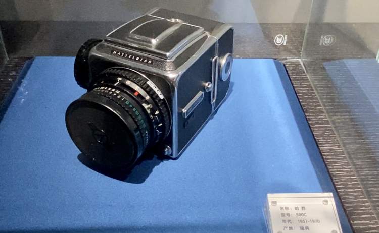 一走进相机博物馆,就可以看到好几台瑞典的哈苏相机。其中一台生产与上世纪五六十年代的的500C,和人类登月时在月球上拍照用的相机,都是出自哈苏最经典的500系列。