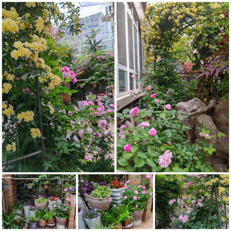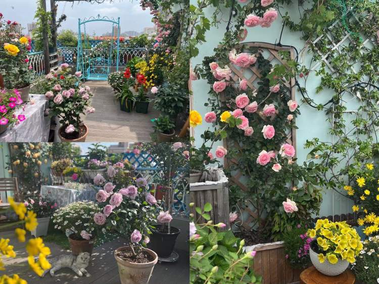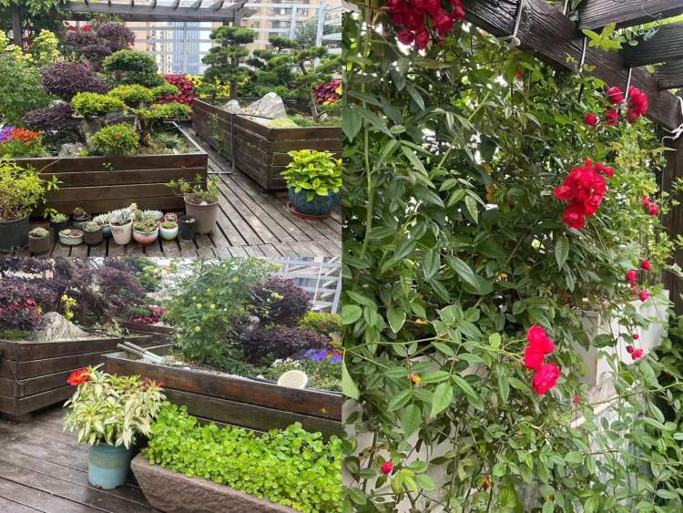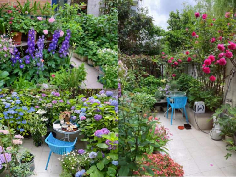 殷女士用了5年的时间打造了一个属于自己的空间,从小苗苗开始拉扯,经历春夏秋冬,花开花落,12平方米的露台被各种鲜花绿植填满。