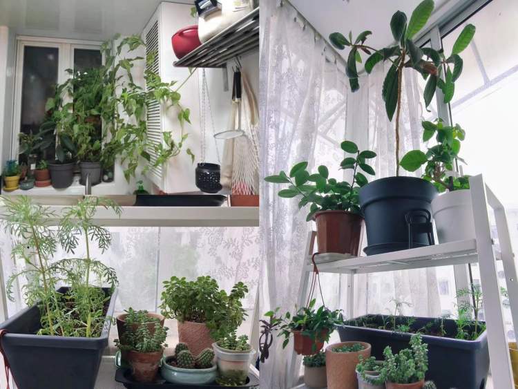 吕先生家的窗阳台并没有特别艳丽、漂亮的花草,但其中的一些花草是他和爱人在小区散步时捡来的种子或者吃剩的果核培育出来的植物。