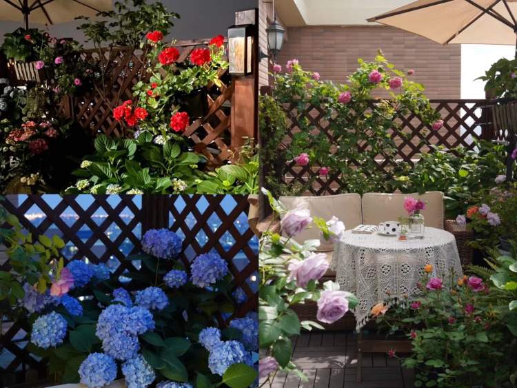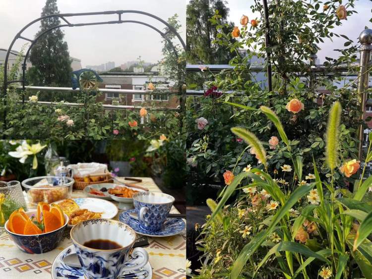 朱女士家的露台上,月季、天竺葵、绣球、多肉,四季有四季的风景。