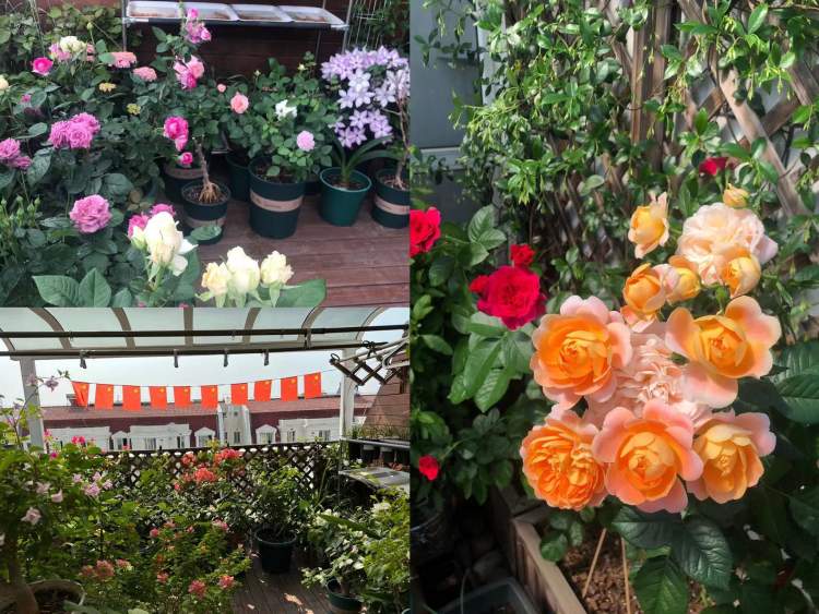 在顶楼18平方米的的露台上,吕女士打造了一个空中花园,以月季为主,草花和绣球为辅,品种多达70余种。每年4-5月,花园吸引大批亲朋好友、邻居前来摆拍。
