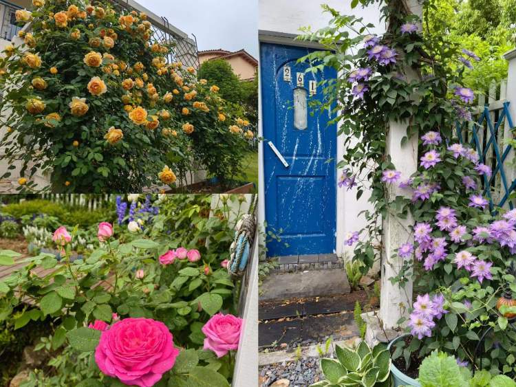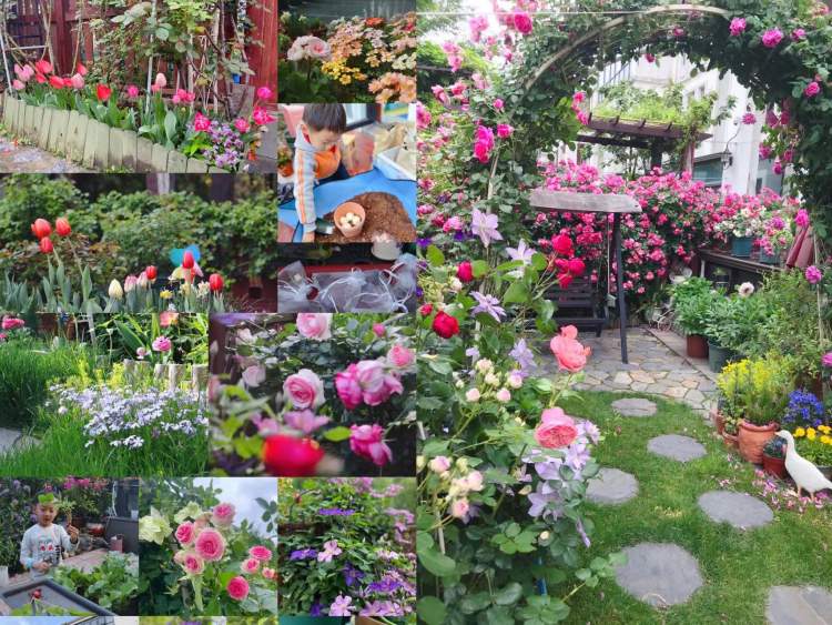 李女士和她的家人用9年时间一起打造出一个开满鲜花的童话世界。木质篱笆是会木工的公公买来原木色木料油漆完成的;地砖、踏步石是老公买来石块和花园砖,全家一起量尺寸、混合水泥黄沙铺完的;婆婆和她负责花园的日常维护;小朋友协助秋播种春赏花。