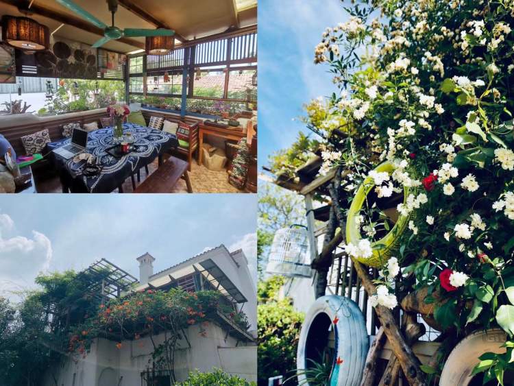 费女士家的这个露台已经打造了8年,他父亲贡献了木工手艺,母亲贡献了布艺手艺,他本人设计了旧物改造。露台鲜花盛开,生机勃勃,每年保持一些微更新。
