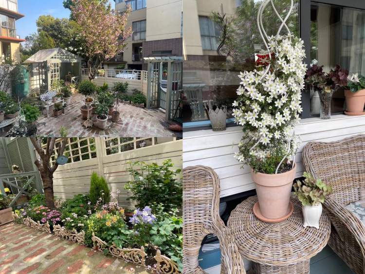 王女士的花草种在朝西南的露台上,以各种季节的草花和铁线莲为主。