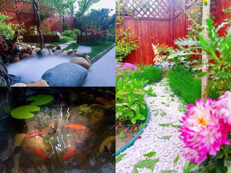 史女士的庭院里,有花有鱼,雾森系统一开,宛若仙境。