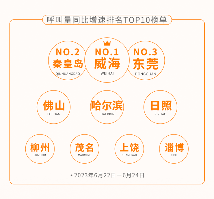 但不同于往年的“一枝独秀”,今年的端午假期,一些冷门、特色城市也开启“人山人海”模式,成为新晋网红打卡地。T3出行大数据显示,在呼叫量同比增速排名Top10榜单中,以三四线城市为主,分别为威海、秦皇岛、东莞、佛山、哈尔滨、日照、柳州、茂名、上饶、淄博。