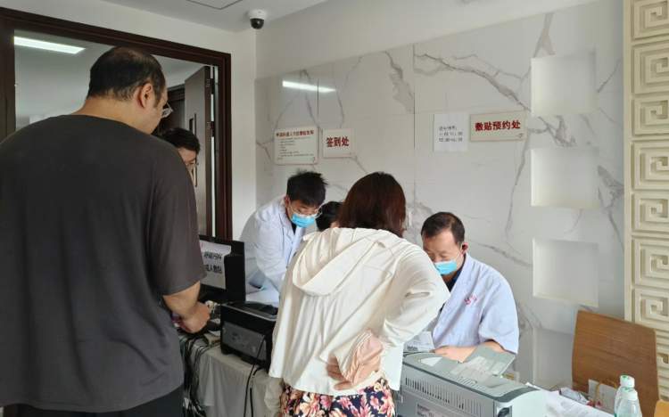除了老慢支、哮喘、慢性鼻炎等呼吸系统疾病的老病人,今年前来做敷贴的还有不少去年底感染新冠病毒或者今年“二阳”后、状态一直没有恢复的患者。这些患者中有很多是上班族,一般晚上下班后过来做治疗,所以晚上六点左右也是治疗高峰时段。
