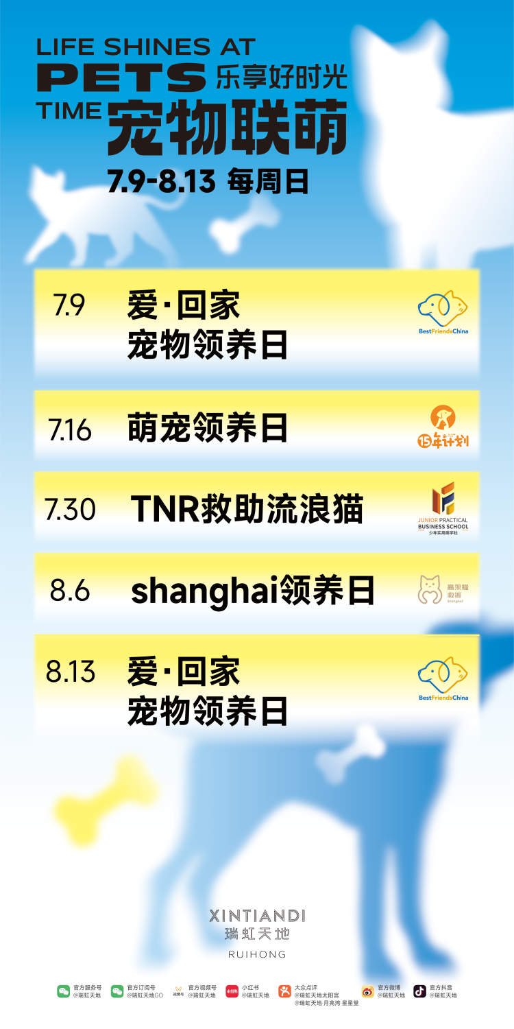“宠物联萌”社群活动则基于月亮湾开放“宠物友好”进行了全面升级,于每周日开展宠物领养、宠物挑战赛、宠物T台赛等活动,让宠物和主人可以一同享受有爱、有趣的城市生活。随着“它经济”的持续升温,月亮湾对于“宠物友好”消费体验的探索取得了初步进展——场内Charlie’s Burger粉红汉堡、公路商店、地理学家、驻·ZUNE Glamping Bar等数十家商户纷纷推出宠物友好餐点或服务,现场增设宠物友好专梯及引导标识,出街《宠物友好公约》等等。未来,瑞虹天地月亮湾还将从基础设施、宠物服务、宠物活动空间的提升改造等方面持续精进探索,不断优化宠物友好管理工作,为爱宠携宠消费者提供更加便捷、舒适的购物消费体验。