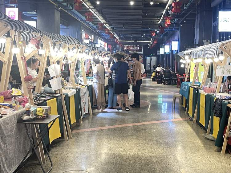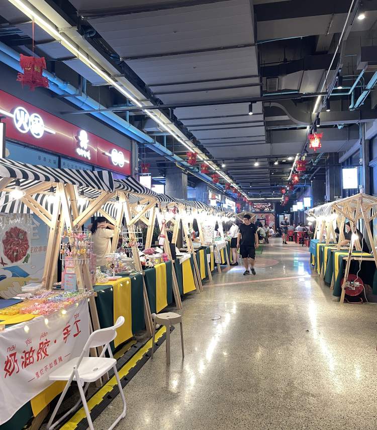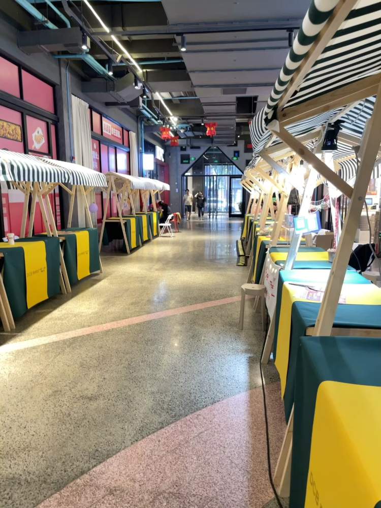 汪玲之前在的东潮街集市就是典型例子,虽然是实打实的免摊位费,但真可以用“门可罗雀”来形容,集市开始后,连续有1周多的时间,都是整个集市只有3个摊位有摊主入驻,整个商场人流少,一天经过的人十个手指能数的过来,驻足了解、买买买的人更少。