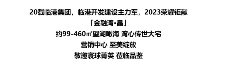 金融湾·晶一期曾书写“开盘即售謦”热销奇迹,而今、二期又将延续冠销全城的热望期待!以金融总部湾心正席、望湖瞰海传世大宅的天赋之韵脱颖而出,诠释沪上人居新定义,愈发备受关注和市场追捧!