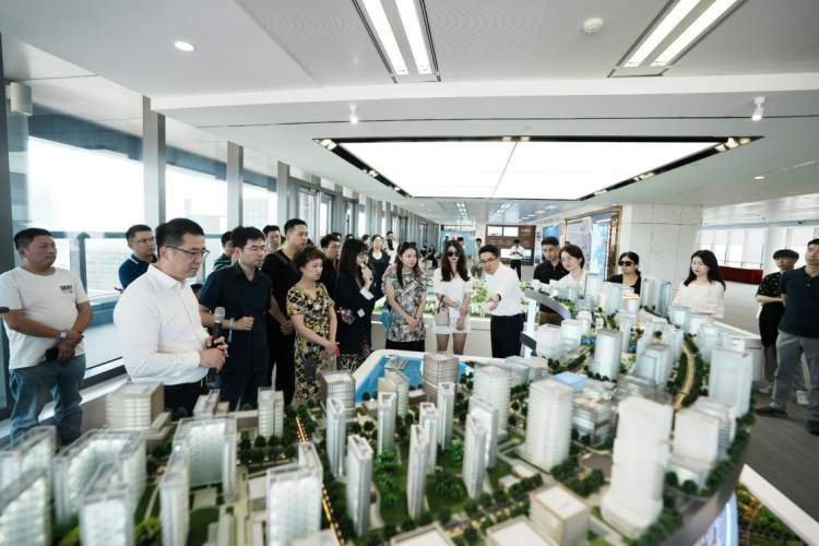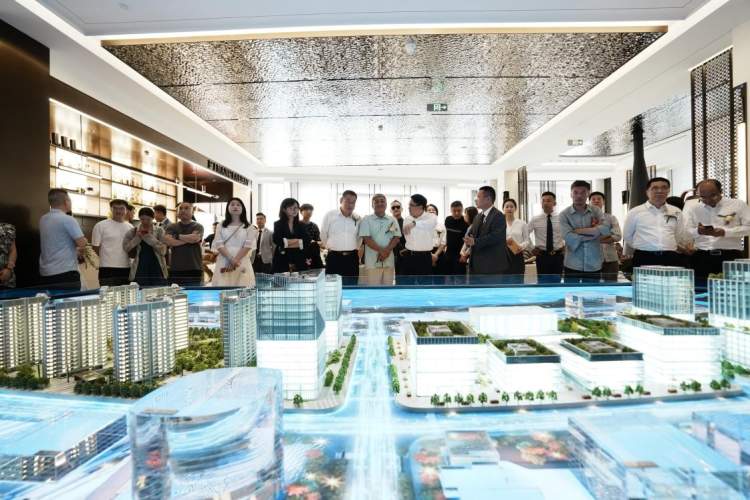 嘉宾们品鉴完营销中心、样板房之后意犹未尽,纷纷搭乘接驳车前往项目一期,身临其境饱览滴水湖旖旎湖光,即视感领略金融湾·晶临湖而居的无与伦比震撼魅力。