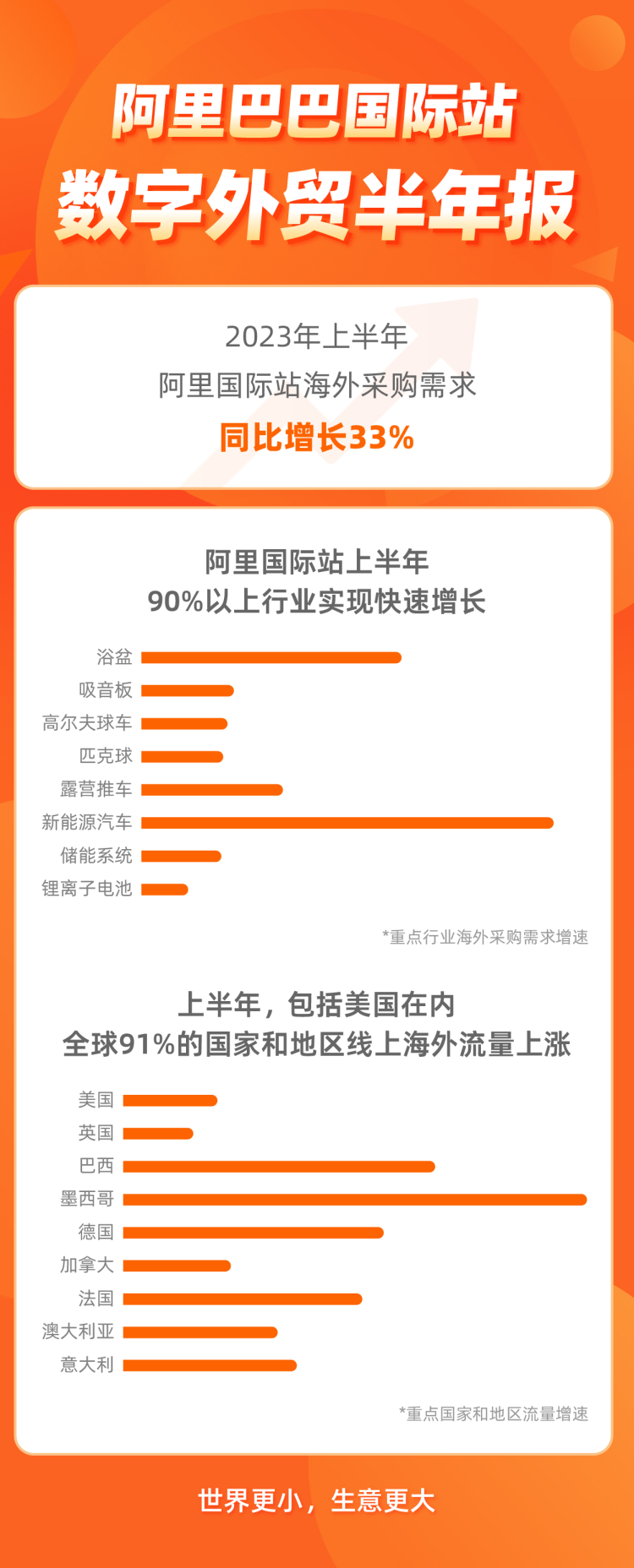 2023年上半年,阿里巴巴国际站上,海外线上需求同比增长33%。
