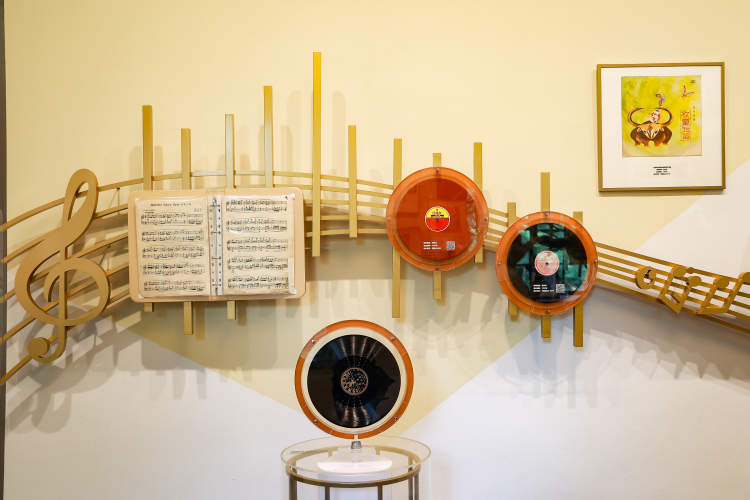 这次特展从多维度展现了贺老的传奇人生,以贺老各时期的唱片、乐谱作为主要展陈内容,结合影像资料与理论著作、贺老纪念文集等书籍,串联起贺老作为“创作者”“革命者”“教育者”的一生,声影交互之间贺老的激情岁月与艺术成就翩然立于眼前。
