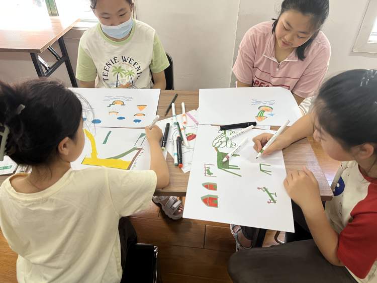 梁老师还给孩子们科普了西瓜的组成部分和生长周期,最后让大家发挥想象力根据绘本内容进行创编,可以用文字记录感受,也可以用画笔创作《西瓜游乐场》的内容,大家用彩笔创作出心目中五彩斑斓的夏天,西瓜房子,西瓜过山车,西瓜雕塑……现场的一位家长告诉周到君:“活动很有趣新颖,和一般的阅读课不大一样,孩子喜欢阅读,我们经常参加这样的亲子文化活动,送到社区家门口太方便啦!”