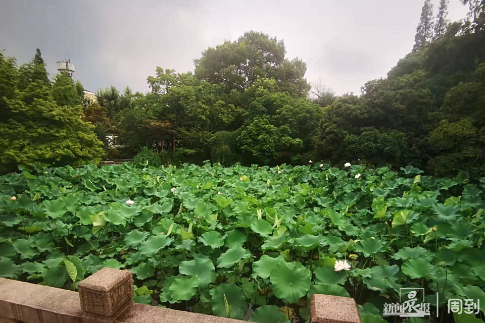 “我住在附近,听说这里的荷花开了,所以过来看看。”刚刚拍摄完延时摄影的女士笑着说道:“要不是我妈妈,我还不知道附近有这么一个园子呢。上次她来看我的时候,拉着我出来散步,就到这里来了,坐在这个亭子下赏花。今年我妈妈没来,所以我一个人来看看花开得怎么样了。”