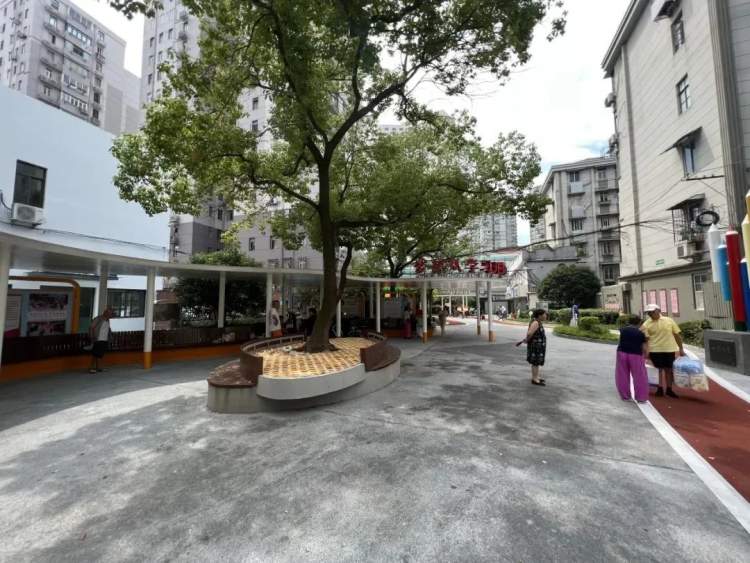 在石泉路街道陆一社区门口,高大的樟树嵌入S型休闲座椅廊、爬藤绿植已如“雨棚”一般茂密,为广场增添了无限的生机,打造出更优美的广场空间。还有为老年人和孩子设计的标准健身器材和一条重新铺设的橡胶慢跑道蜿蜒其间,吸引了不少居民前来休憩漫步——而这便是“微更新”后的孝亲广场。