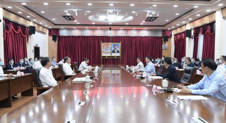 由上海市委书记陈吉宁率领的上海市代表团7月17日在西藏自治区日喀则市,与西藏自治区党委书记王君正等自治区领导举行上海·西藏对口支援工作座谈会,共商对口支援大计,共谋两地合作新篇。会前,陈吉宁、王君正等沪藏两地领导看望慰问了上海援藏干部人才代表。