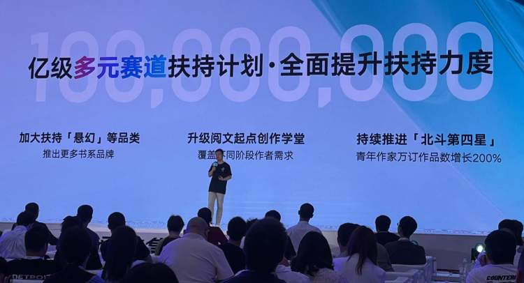 阅文集团副总裁、总编辑杨晨详细阐述了有效阅读数据、推荐展示效果、追读和追读率在内的数据服务升级,“精细透明的信息指引,可以帮助作者,尤其是新人作者做好一道道创作生涯的选择题”;重磅发布了囊括现实、科幻、悬幻等赛道在内的亿级多元赛道扶持计划;全面介绍了即将上线的IP孵化和运营模块,包括全过程专家支持IP孵化、拓展形式的IP宣发、AIGC多模态能力加持的IP体验等。