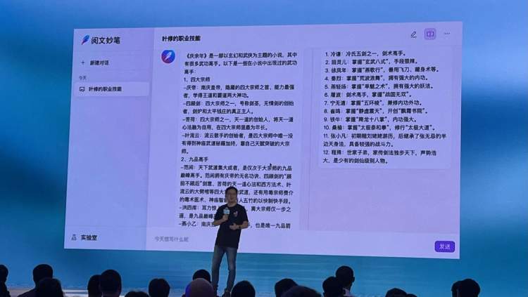 现场,阅文集团副总裁黄琰仔细讲解了作家助手妙笔版的四大功能:世界观设定、角色设定、情景描写和打斗描写等,举例展示了这些功能如何帮助作家丰富细节、辅助创作、提升效率等。