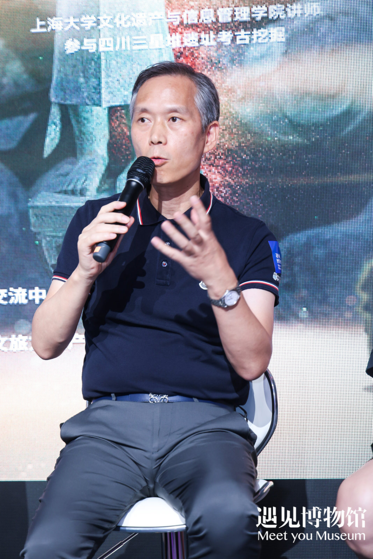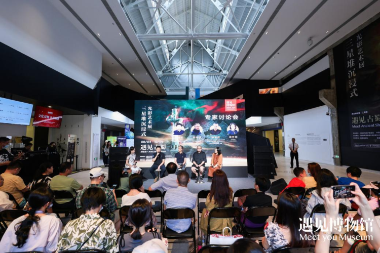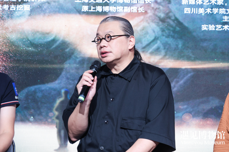 在随后进行的专家讨论会环节,上海交通大学博物馆馆长、原上海博物馆副馆长李仲谋,新媒体艺术家、四川美术学院文化遗产数字艺术研究中心主任及首席专家林俊廷,上海大学文化遗产与信息管理学院讲师徐斐宏以及艺术学博士、上海美术馆策展人项苙苹四位嘉宾,在现场进行了对谈分享,以专业视角回顾了灿烂的古蜀文化,并深入探讨了数字艺术赋能文物“活起来”、讲好中国故事等话题。
