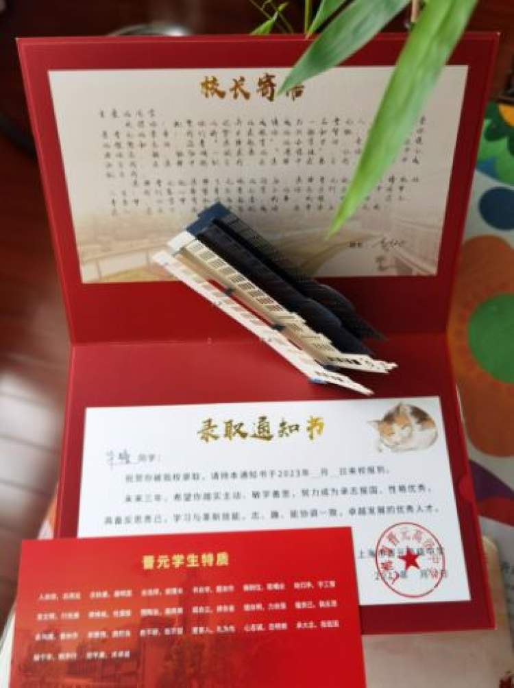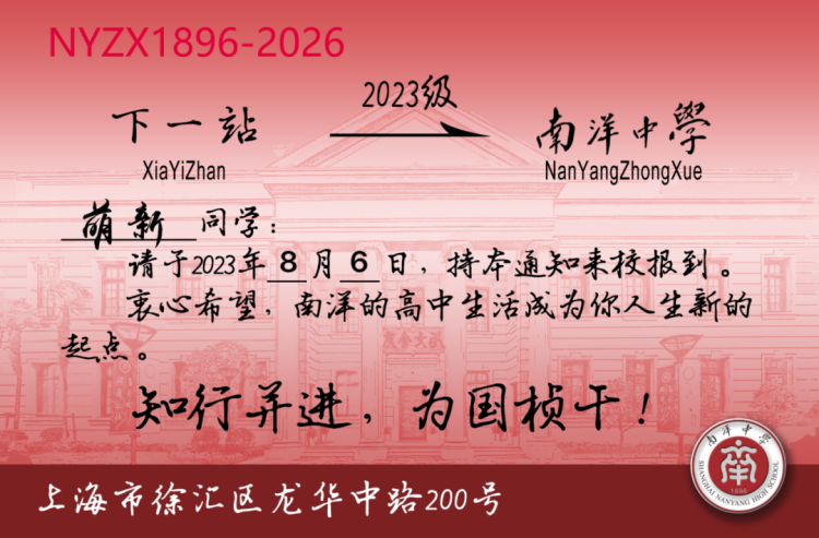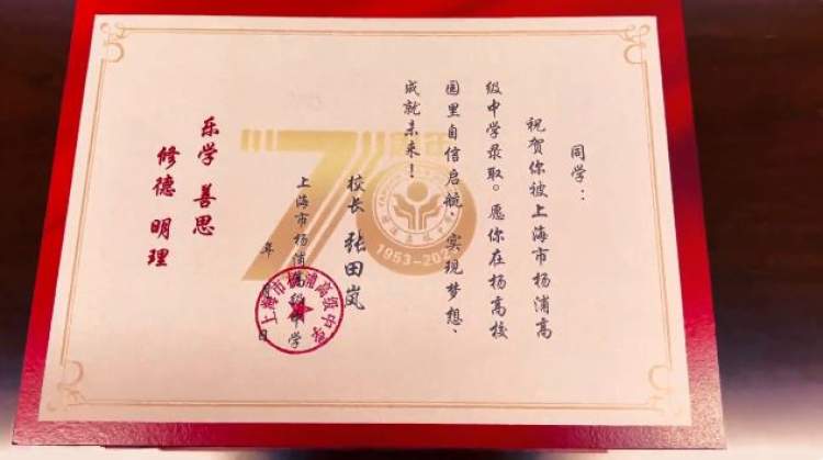 当校庆遇上开学季,杨浦高级中学70周年校庆特别版录取通知书,已陆续送到2023级高一新生的手中,期待在杨高与同学们相遇。