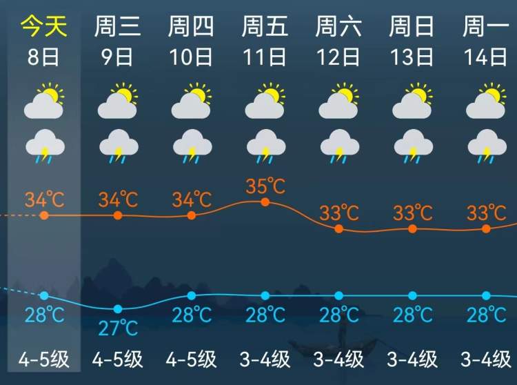 这段时期气温较高,最高气温在33~35℃。请大家要继续做好防暑降温工作。