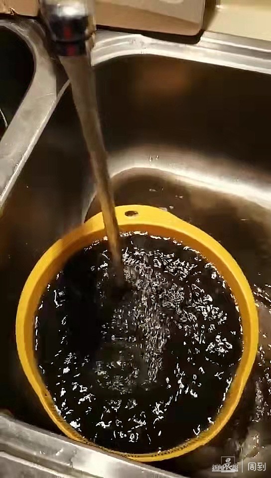 当时,不在家的卢女士虽然觉得奇怪,但也没有多想,“直到我当天晚上9点回到家,打开水龙头,居然发现流出了墨汁一样的黑水!”