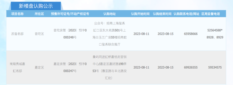 根据网上房地产公布的官方消息显示,位于嘉定区的【南翔秀城嘉虹名邸】,以及普陀区的【苏玺名邸】将于今明两天开启认购。项目总共推出684套房源,面积跨度从73平方米到145平方米不等,购房者可选空间较大。