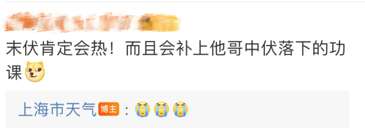 另据@上海市天气 长达20天的中伏(7月21日-8月9日),上海只出现了两个高温日(8月6日、8月7日)。
