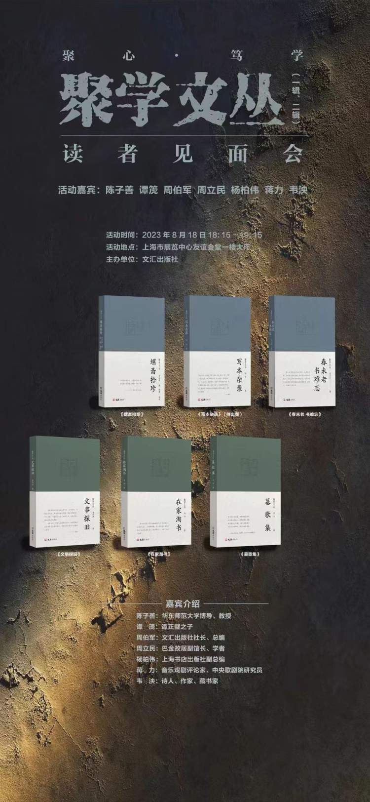 周立民8月18日晚上将参加在上海展览中心的聚学文丛读者见面会