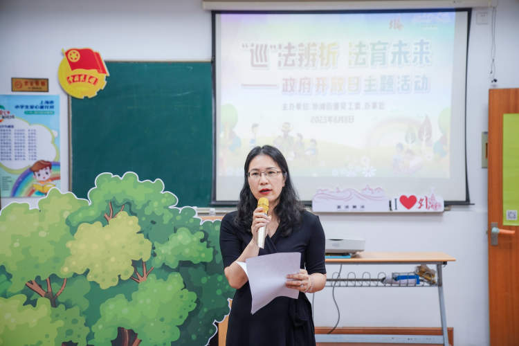 活动中,外滩街道办事处主任潘燕兵作致辞发言,她表示,早在2021年,黄浦区人民法院与外滩街道联手成立了全市首个城市更新巡回审判(调解)工作站,为居民提供调解平台,将矛盾纠纷化解在萌芽状态。本次政府开放日主题活动将行走的“巡回法庭”带入到小朋友的课堂上来,近距离地接触到日常生活中容易被忽视的“小陷阱”,不仅是一次知识的传授更是一次互动,让孩子们更好地掌握生活常识和法律知识,形成正确的是非观和价值观。