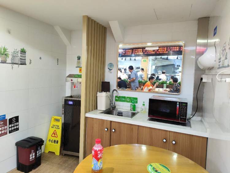 这还是一家以“智慧食堂”理念打造的社区食堂,配备了芯片餐具、芯片结算台、智能结算终端等软硬件,智能化保温台能将菜品在55℃—90℃温度范围内持续保温,根据不同菜品标准提供不同温度,确保最新鲜的口感。菜品展示区的显示器终端,不仅能够查看对应菜品的单价,还将每道所盛菜品对应所含的碳水、蛋白质、脂肪含量等营养参数统统显示出来,居民看了也能吃的更舒心。