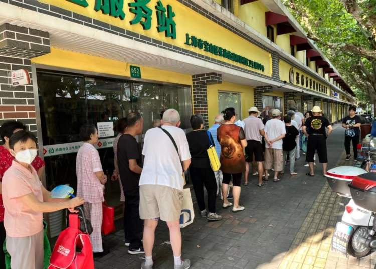 虹口区市民驿站嘉兴路街道第五分站社区食堂,位于香烟桥路87号,早上7点刚过就早早排起了长队。
