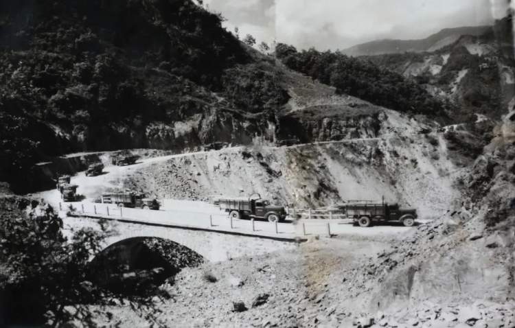 1968年,拉运木材的车队经过木鱼胜利桥