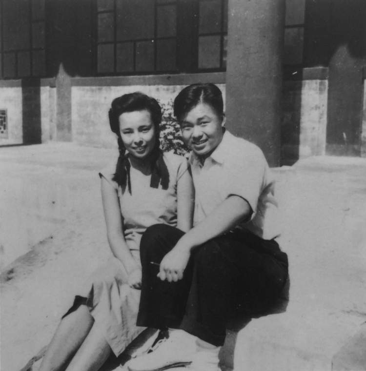 在北大理学院大礼堂的台阶上,李载平与崔桂芳的初次合影