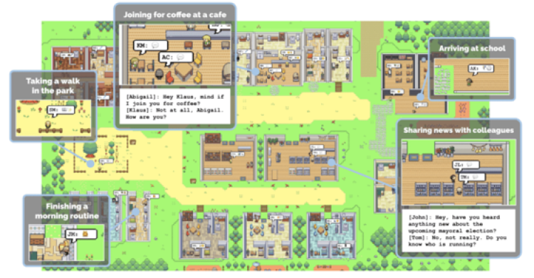 据悉,在这个数字化的“西部世界”沙盒虚拟城镇中,有学校、医院、家庭。25 个 AI 智能体不仅能在这里上班、闲聊、social、交友,甚至还能谈恋爱,而且每个 Agent 都有自己的个性和背景故事。