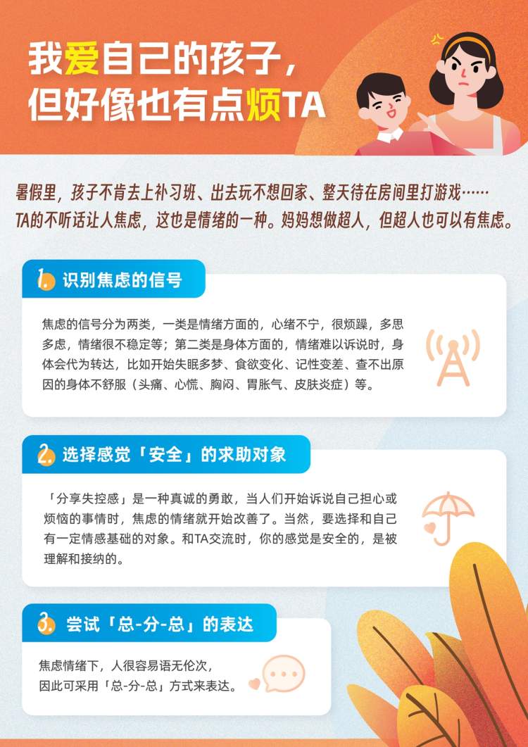 我们常说要给孩子一个快乐的暑假,但在更多关注孩子们的同时,也应更加理解照顾到家长们的情绪变化,让彼此都能拥抱健康,拥抱爱。