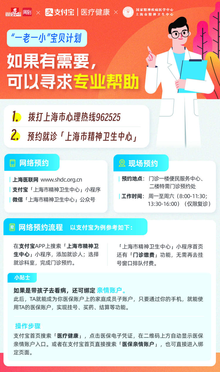 实际上,这份“暑期亲子心理健康手册”只是强化数字化就诊领域患者教育的一部分。此前,新闻晨报·周到就已经加入“一老一小”宝贝计划,并联合支付宝发布“一老一小”宝贝计划就医指南,针对上有老下有小的社会中流砥柱群体,提供从上海特色医院服务到数字化线上就诊的使用攻略。