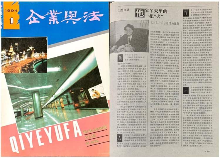 1994年《企业与法》杂志刊登了杨育新的采访