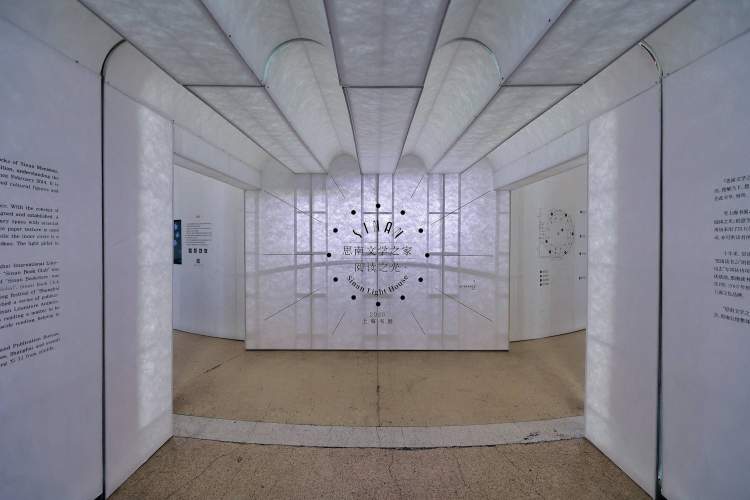 搬到上海书展的“思南文学之家”位于上海展览中心西一馆一层,设计者以“开卷有得,满室生光”为理念,用白色的杜邦纸为主料,搭建出一个独立的阅读空间,名为“阅读之光”。空间内,有书籍陈列,有文创展陈,既可以用于举办读书会活动,亦可供读者休憩交流。空间最中心的光柱,犹如灯塔,寓意文学点亮生活。