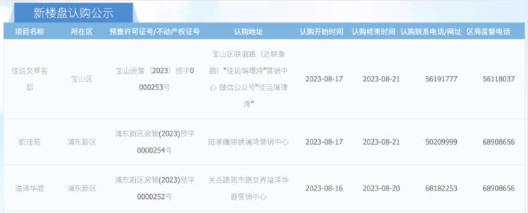 根据网上房地产官方消息显示,8月16日起三盘陆续开始认购,分别是位于浦东周浦的【溢泽华庭】,位于浦东航头的【陆家嘴锦绣澜湾】以及位于宝山共富的【佳运瑞璟湾】。三盘累计推出超700套房源,面积跨度从55平方米到188平方米不等,可满足购房者各能级消费需求。