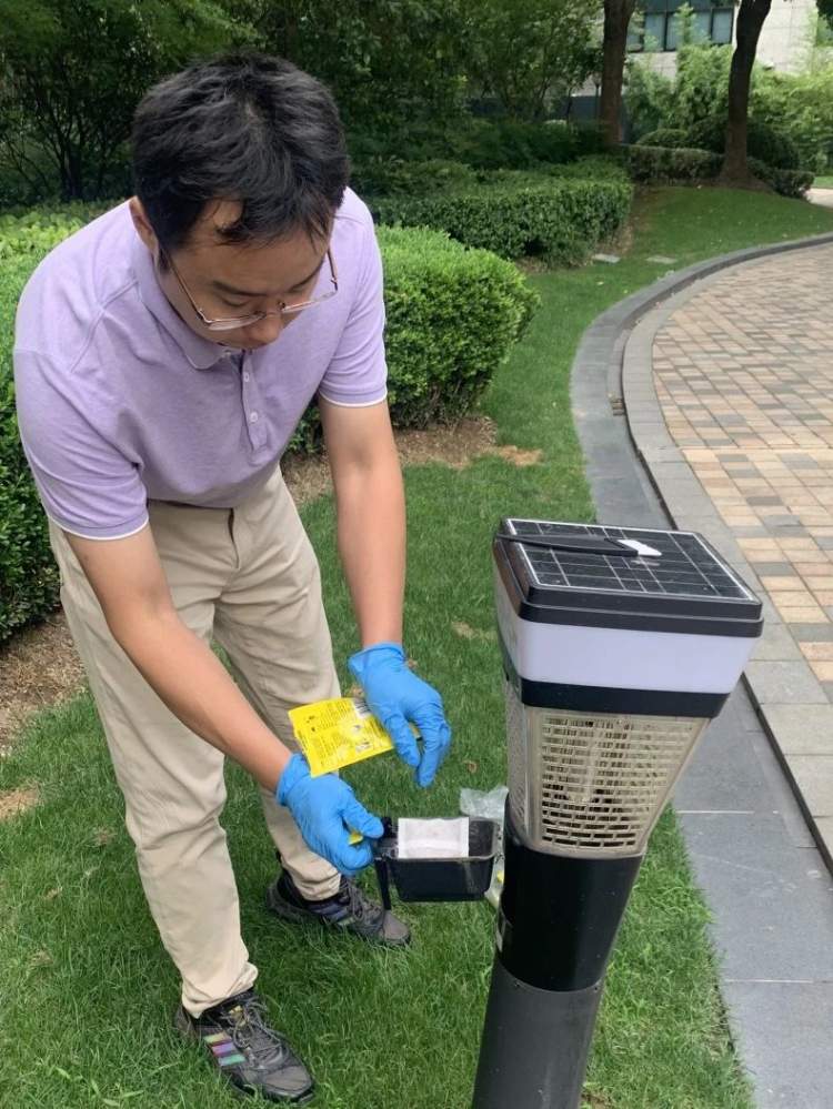 居委会城管主任陆钟全的社区巡查日记中记录着不少居民反映的蚊虫较多影响日常生活的诉求,如低楼层的住户因蚊虫较多,不敢开窗通风;在小区散步健身时,经常被蚊虫叮咬。针对居民的诉求,陆钟全第一时间与专业人员进行联系,定期对小区的蚊蝇开展消杀,但考虑到化学试剂的副作用,不适宜频繁使用。为能从根源上解决这一困扰居民多年的烦心事,陆钟全通过开展居民意见征询、横向借鉴学习,最终形成“蚊见五愁法”化解方案,得到了来自小区居民的全力支持,通过众筹捐赠的方式,在绿化密集区域安装太阳能灭蚊灯,并组织志愿者共同承担起灭蚊灯后续的维护和管理。16盏灭蚊灯正式“上岗”后,不仅解决了蚊蝇扰民问题,也是用这靠太阳能发电的小小灭蚊灯向居民传达绿色环保的理念。