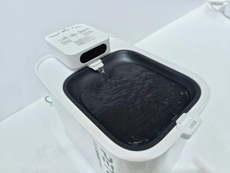 宠物喜欢扒拉啃咬饮水机的充电线?一款今年9月将上市的无线智能饮水机首次亮相展会。这款饮水机有效容量为3L,搭载有接近传感器,可以感知到宠物接近。