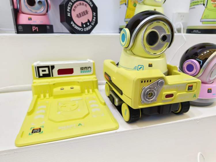 此外,现场还展出了宠物AI摄像机新品,可以自动跟拍、抓拍宠物的一举一动、可爱瞬间,然后自动剪辑成视频保存下来。“工作”完成后,无需人工操作,它会自己回到充电位进行充电。