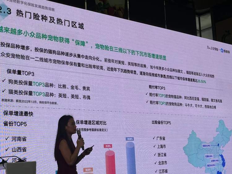 人宠情感“双向奔赴”也推动宠物保险需求的升温。发布会上,众安保险携手蚂蚁保发布的《2023年宠物数字化保险行业发展洞察趋势白皮书》表明,为爱宠规划宠物保险,在全球发达地区已日臻成熟。根据国内知名的互联网保险代理平台蚂蚁保相关数据,2021、2022连续两年宠物保险投保保持80%以上的增速,已投保宠物主人均购买宠物保险份数为1.2份,宠物保险进入重要发展机遇期,成为年轻人特别是女性科学爱宠的重要消费选择。