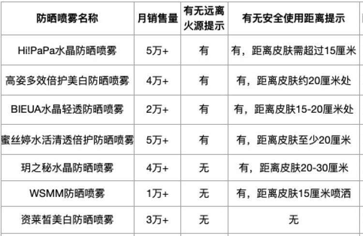 市民李女士表示,近期自己在选购防晒喷雾时,发现各商家对防晒喷雾的安全性提示做得有强有弱,部分商家在醒目处提示,同一页面提示“远离火源”不止一次;有的商家虽然标示了安全使用距离,但会同时出现15-20厘米和20-30厘米两种说法。