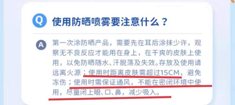 “老人和孩子使用的话可能更不了解危险性,我觉得更多产品应该更规范醒目地提示防晒喷雾的使用风险。”