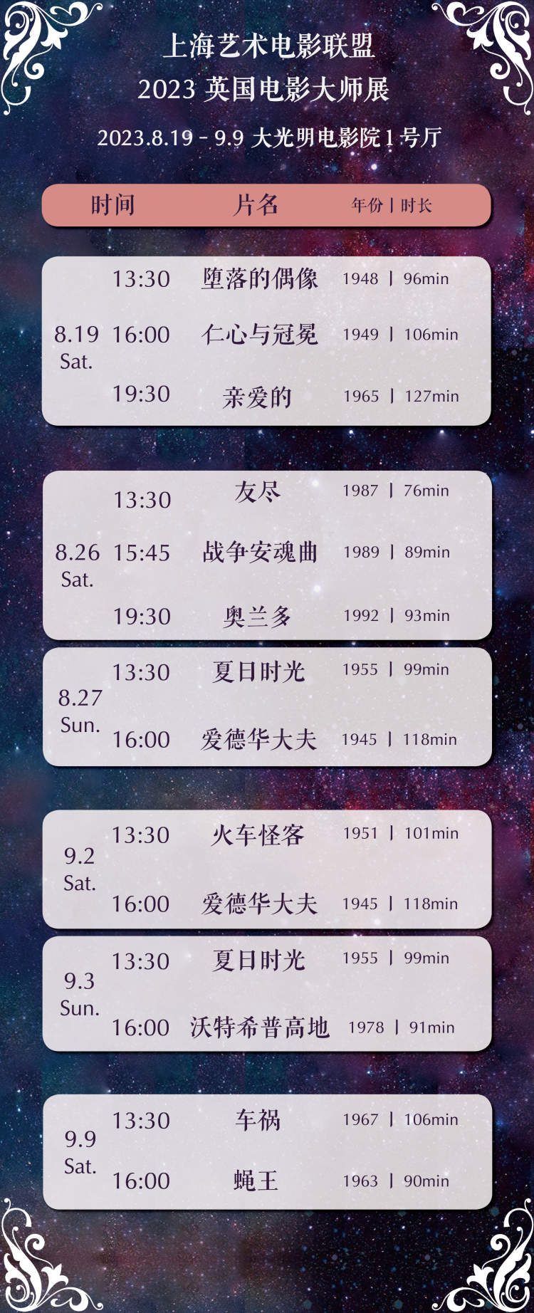 上海艺术电影联盟10周年特别大展“法国电影大师展”刚刚顺利收官,便趁热打铁将于8月19日至9月9日举办“英国电影大师展”。