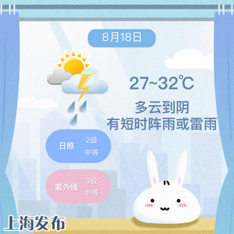 申城天气:今天仍有短时雷阵雨,局地可达大雨,27~32℃ 周到君 2023-8-18 来源:周到上海 上海今天上午多云到阴有短时阵雨或雷雨,午后到上半夜雨势增强,阴有阵雨或雷雨,局部可达大雨,晴雨伞依旧是出行必备单品。 今天气温与昨天相比变化不大,最低27℃,最高32℃。吹的是偏东风3-4级,雷雨时阵风7-9级,风向偏北,相对湿度95%~55%,不下雨时体感还是有些闷热。 本周日就要出伏了,不过体感并没有什么明显的转折,气温起伏不大,未来一周最高32~34℃,最低27~29℃。 (内容综合自上海发布、@上海市天气) 来源:周到上海 作者:周到君 赞一个 (0)